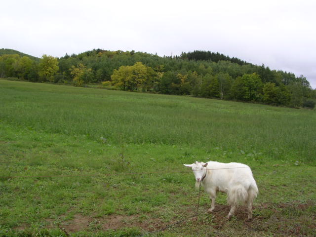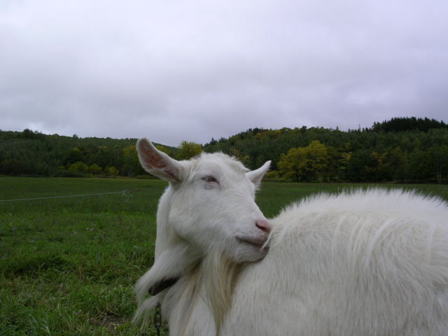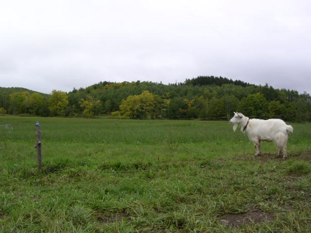 きっかけはそのかたやんの一言。皆がひざを乗り出し、ひとしきりヤギ話で盛り上がり、いつしかヤギは農人研(のうひとけん)センターのアイドルに。そして、ヤギのよこ目はシンボルに。